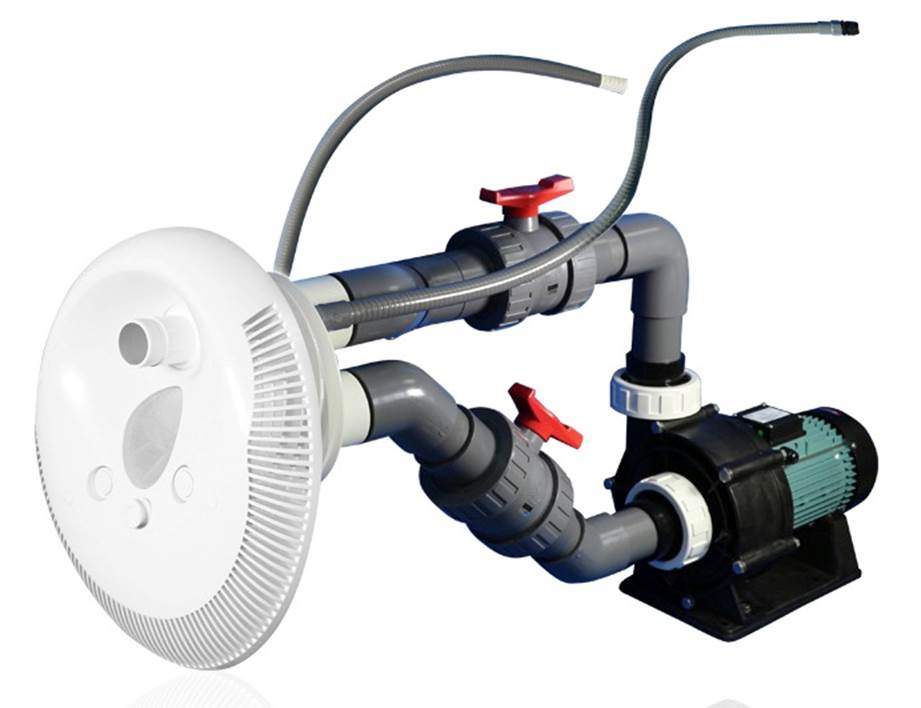 Dieser Strahl wird durch eine Düse in die Mitte des Pools geleitet und die Pumpe wird hinter der Poolwand platziert.