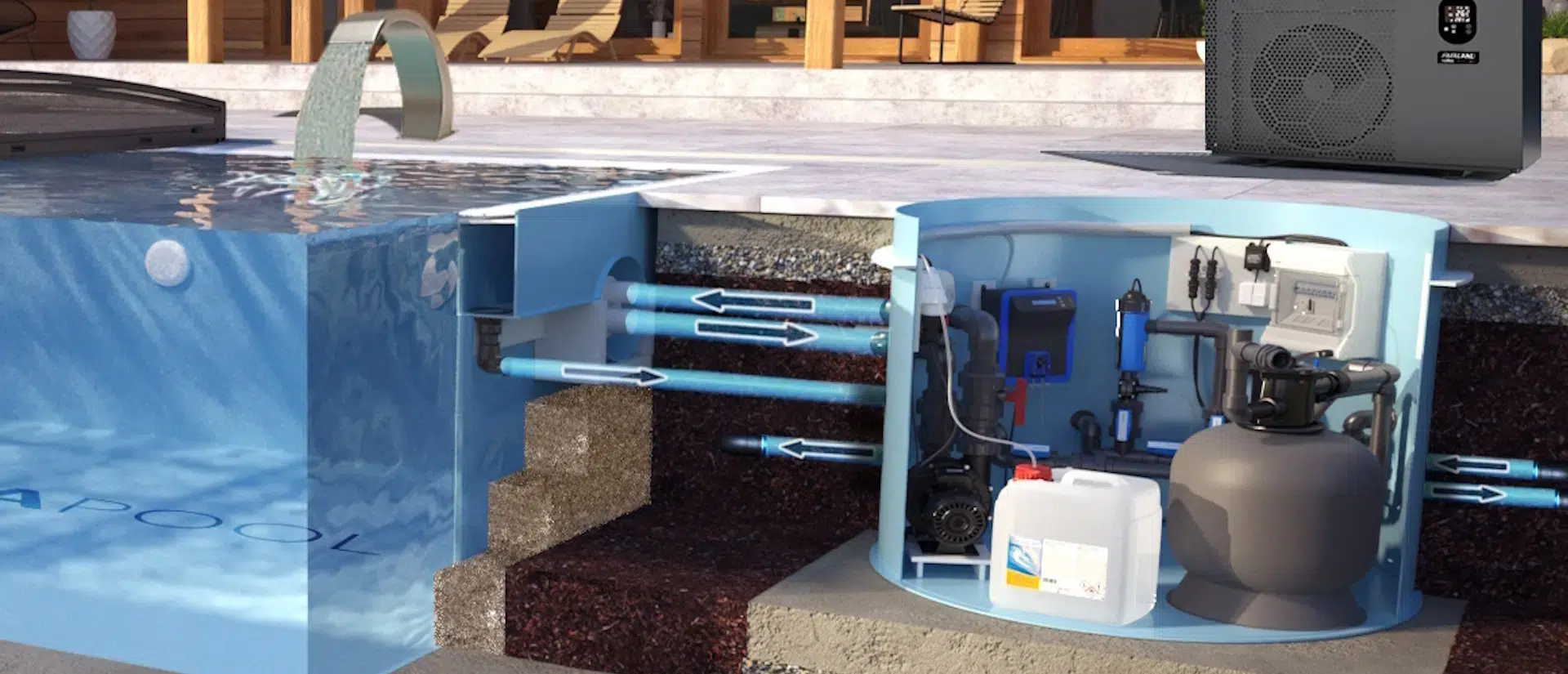 Eine Filterbox ist ein unterirdischer Mini-Raum, in dem etwa 90 % der Poolinstallation untergebracht werden können. Jeder solche Behälter ist dicht, da er auf dieselbe Weise wie der Pool hergestellt wird und ebenfalls auf einem stabilen und ebenen Untergrund platziert werden muss. Jede Box ist mit einem Deckel ausgestattet, der vor Regen schützt. Der Vorteil solcher Behälter besteht darin, dass die Größe und Höhe an die Poolausstattung angepasst werden kann, z.B. kleine Filterung – kleine Box, große Filterung mit Gegenstrom und Anschluss an Wärmepumpe – große Box.
